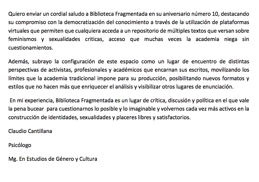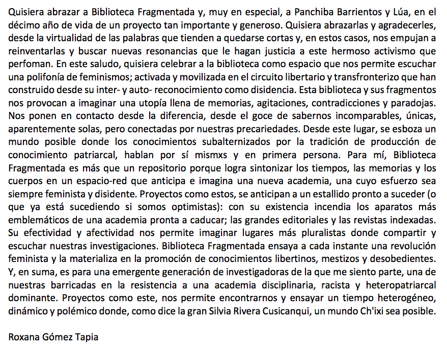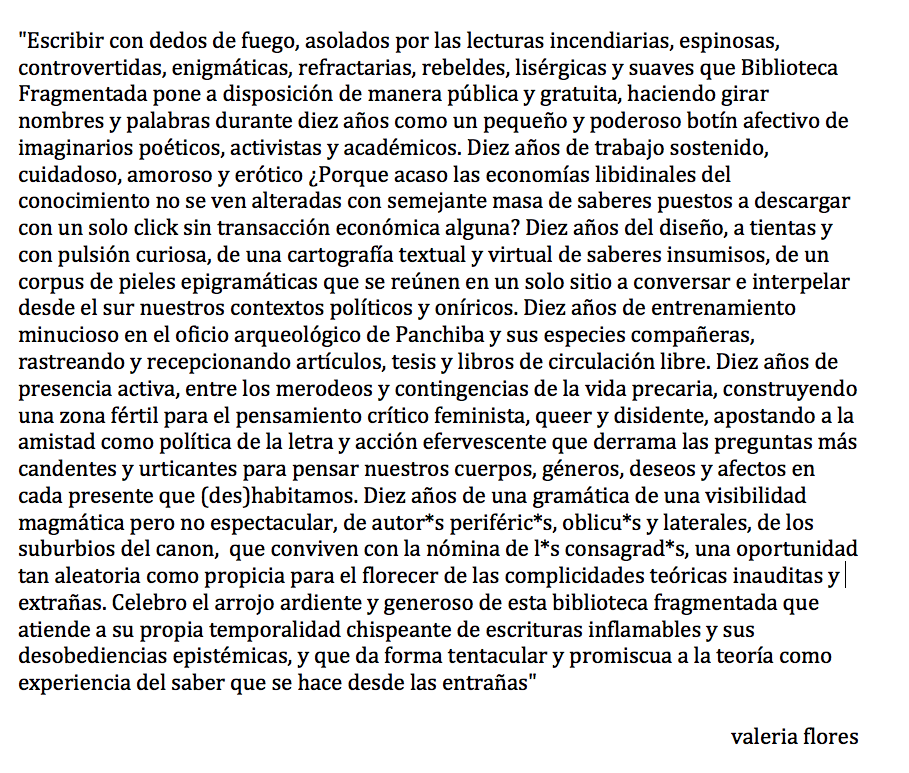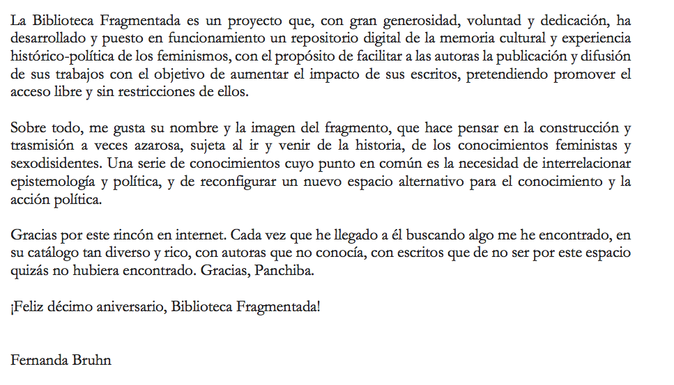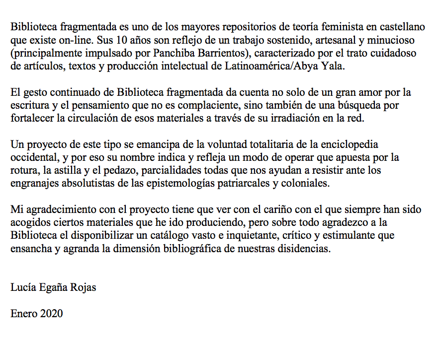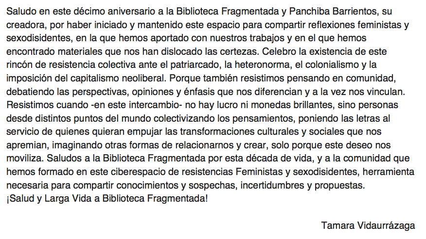 El 9 de enero de 2020 celebramos nuestro décimo aniversario, cumplimos 10 años compartiendo y difundiendo textos feministas y sexodisidentes en pdf.